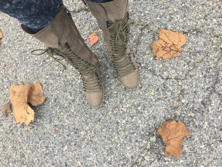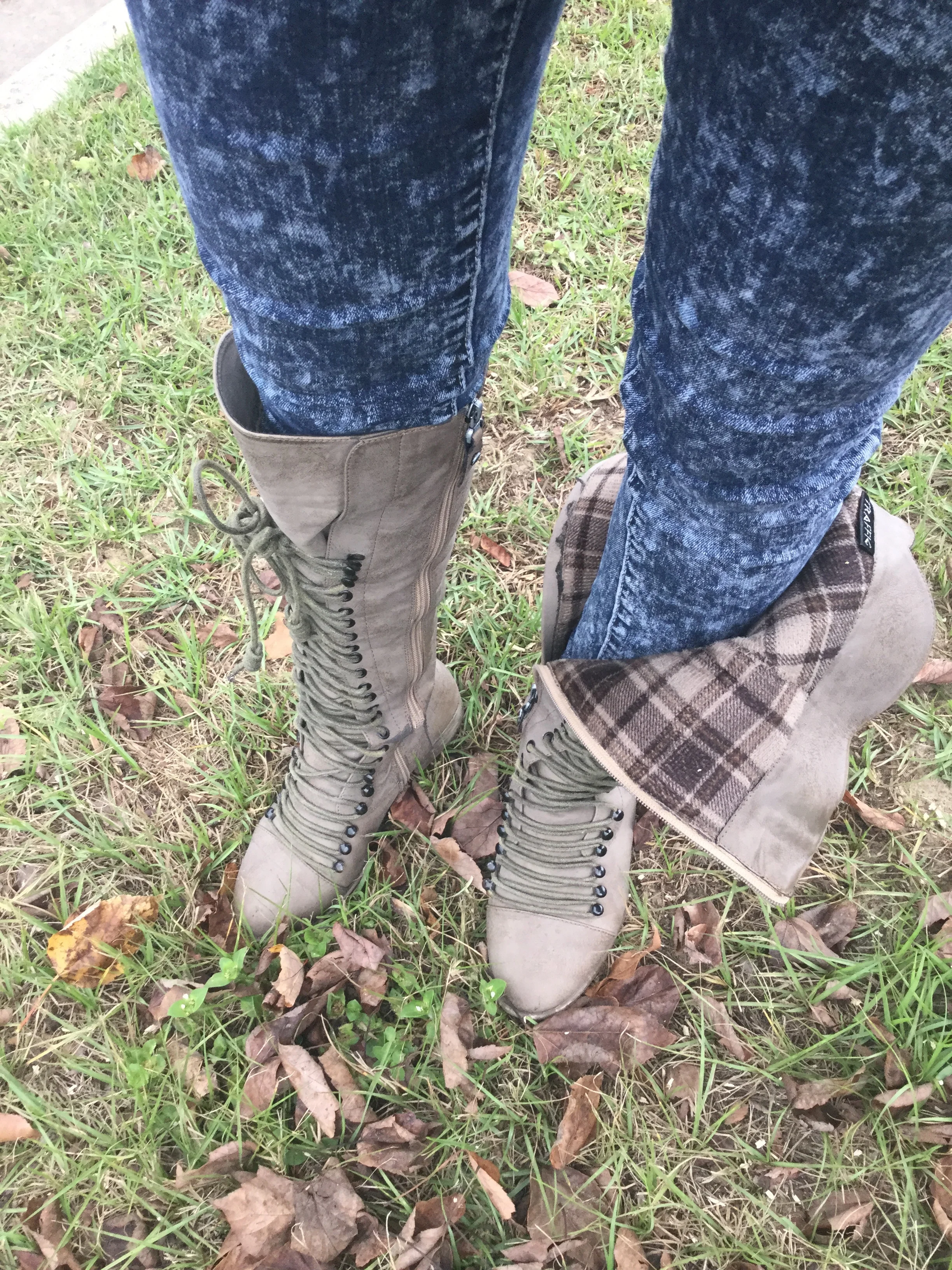 The best thing about these boots is that I had them for over 5 years and they get better over time ! Mud green and brown boots are the best because wear & tear makes it look authentic! The boots are pre-laced with a zipper on the inside so you can easily slip them on. The inside of these boots are sure to keep you warm for the winter with its quilted plaid that is also reversible for a more edgy look. Find a similar look at :