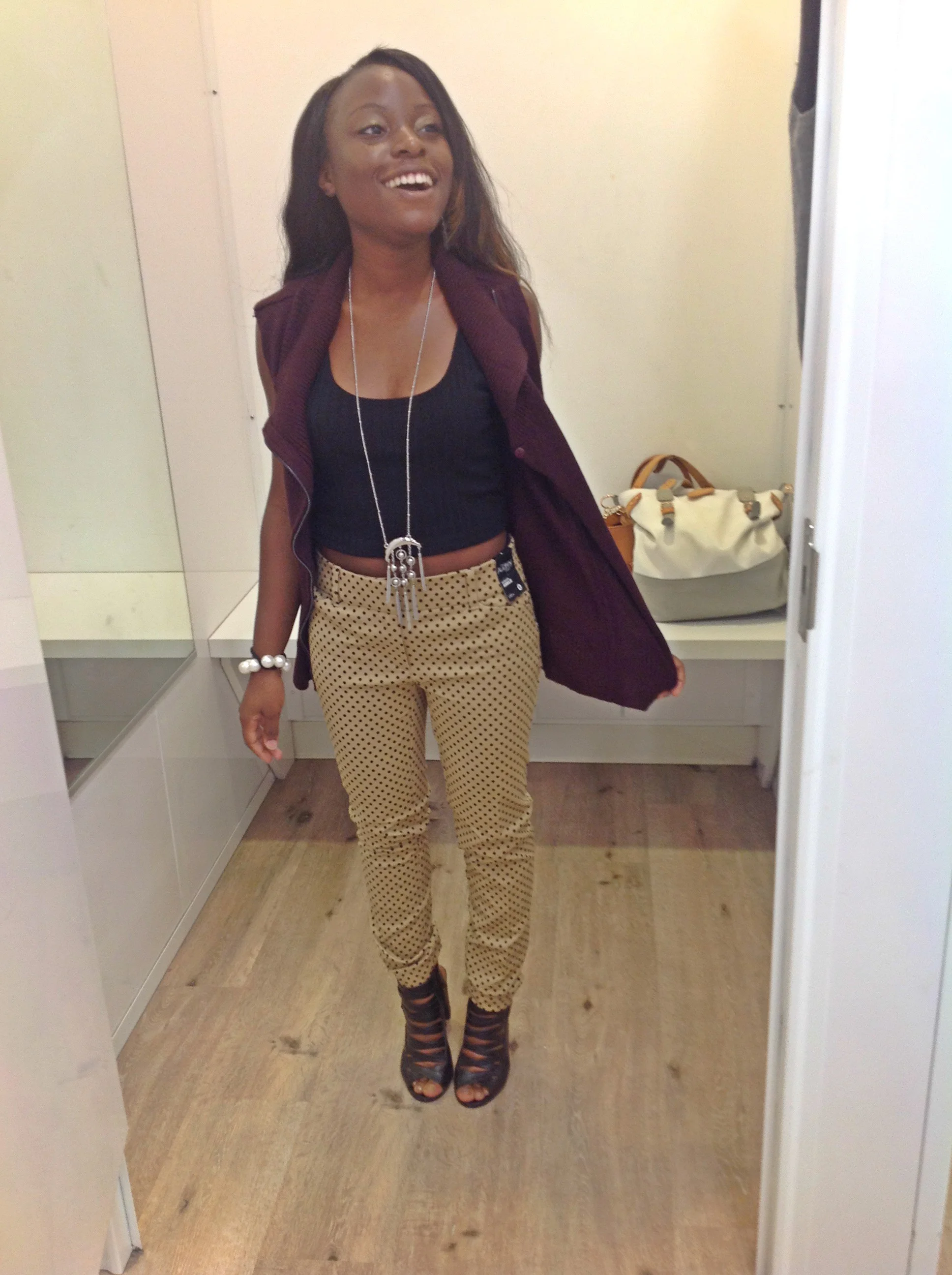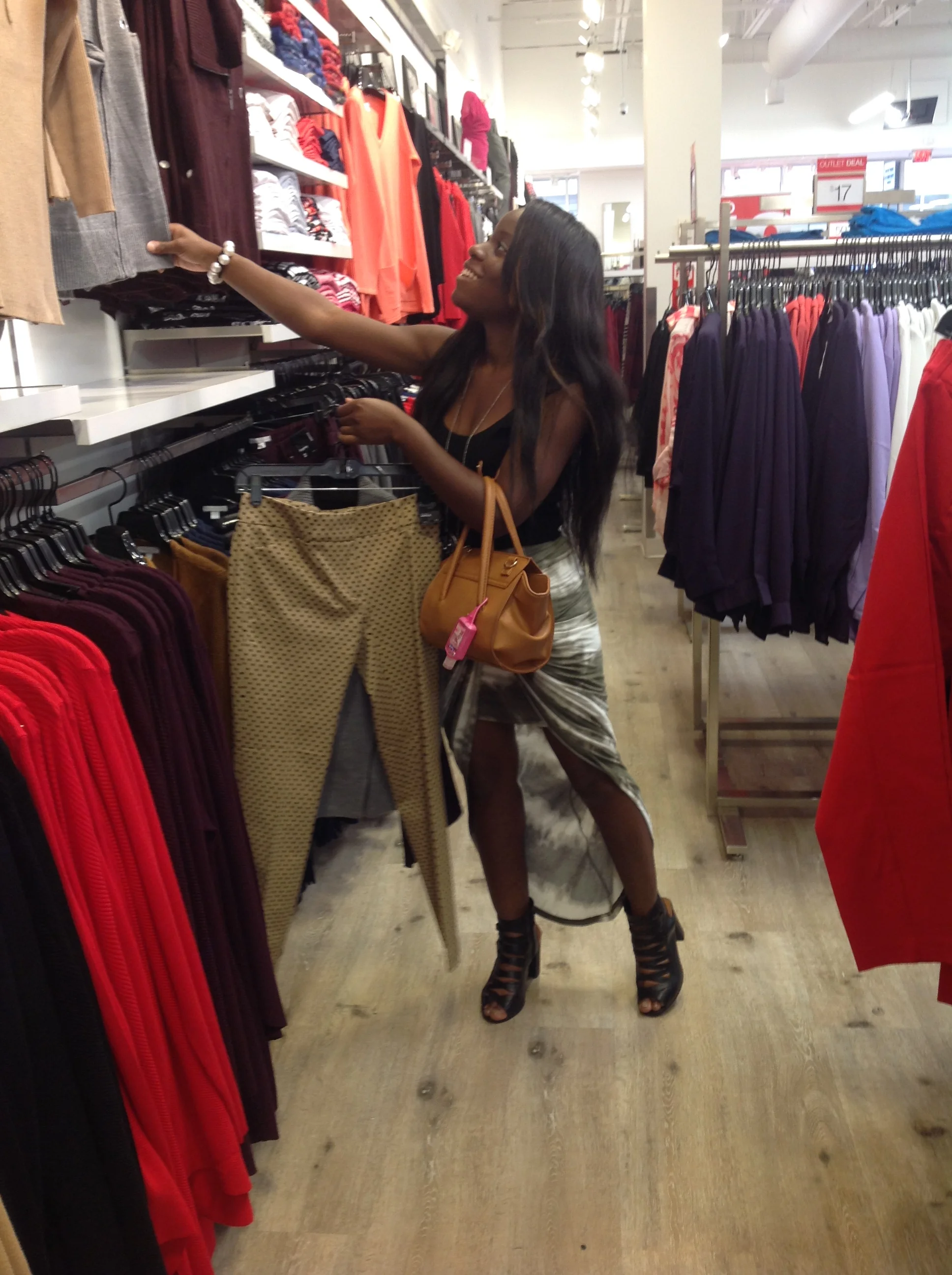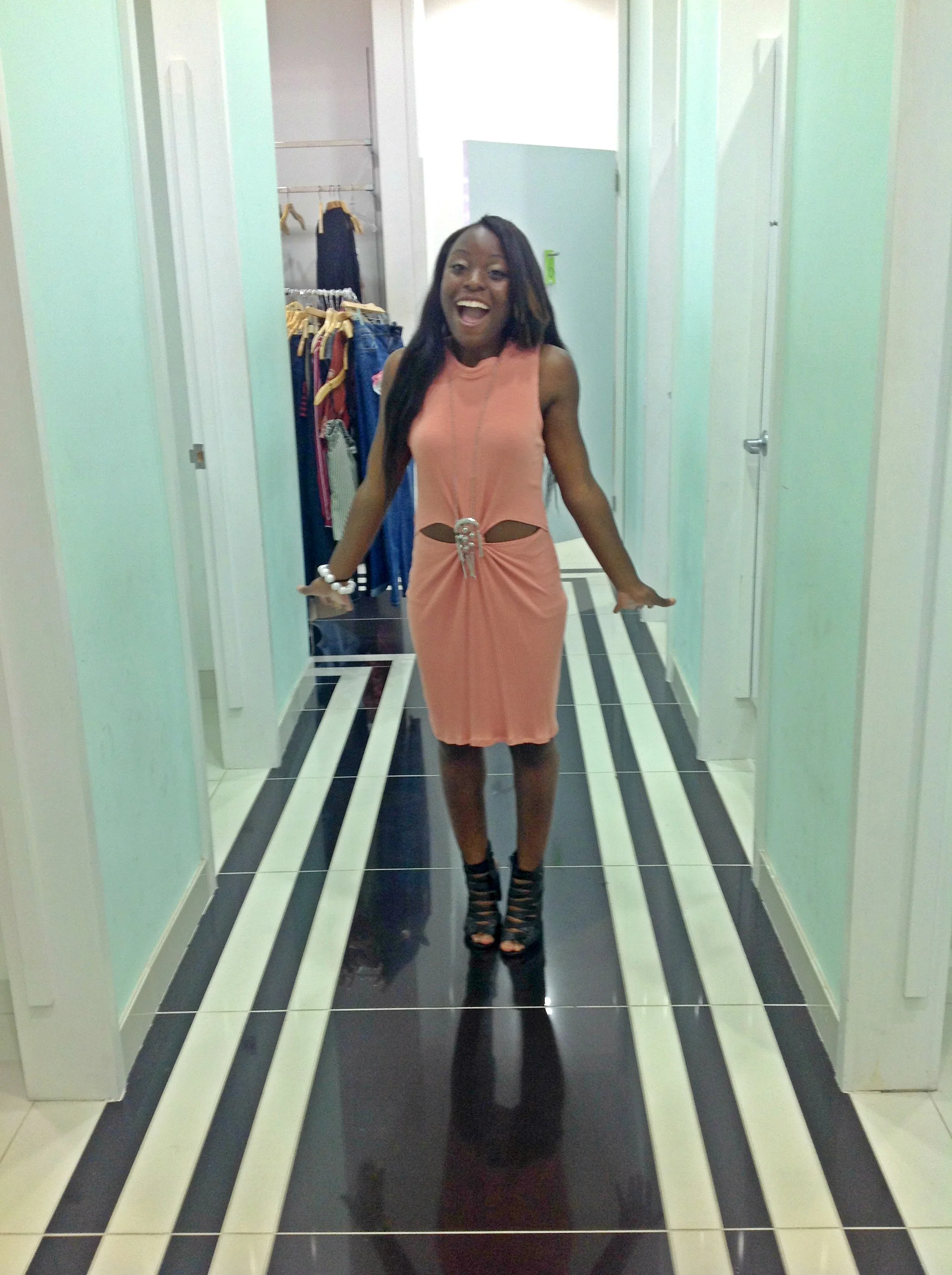 Don’t stay in the fitting room the entire time. Step out of your fitting room and use the walk way as your runway. I know that a lot of people are shy to step out and view their garment in the larger mirror outside of your dressing room, but it makes a BIG difference. Examine your garments in action. Stepping out of your dressing room lets you see if the outfit truly compliments who you are. You will never know if you stay inside that small cubical. Stepping out of the box will also get you great advice and tips from other shoppers and stylist that will be honest with you on how it looks. You will be surprised on the feedback and compliments from others! This can also prevent you from returning items because you didn’t fully examine how it feels and looks outside of the fitting room.