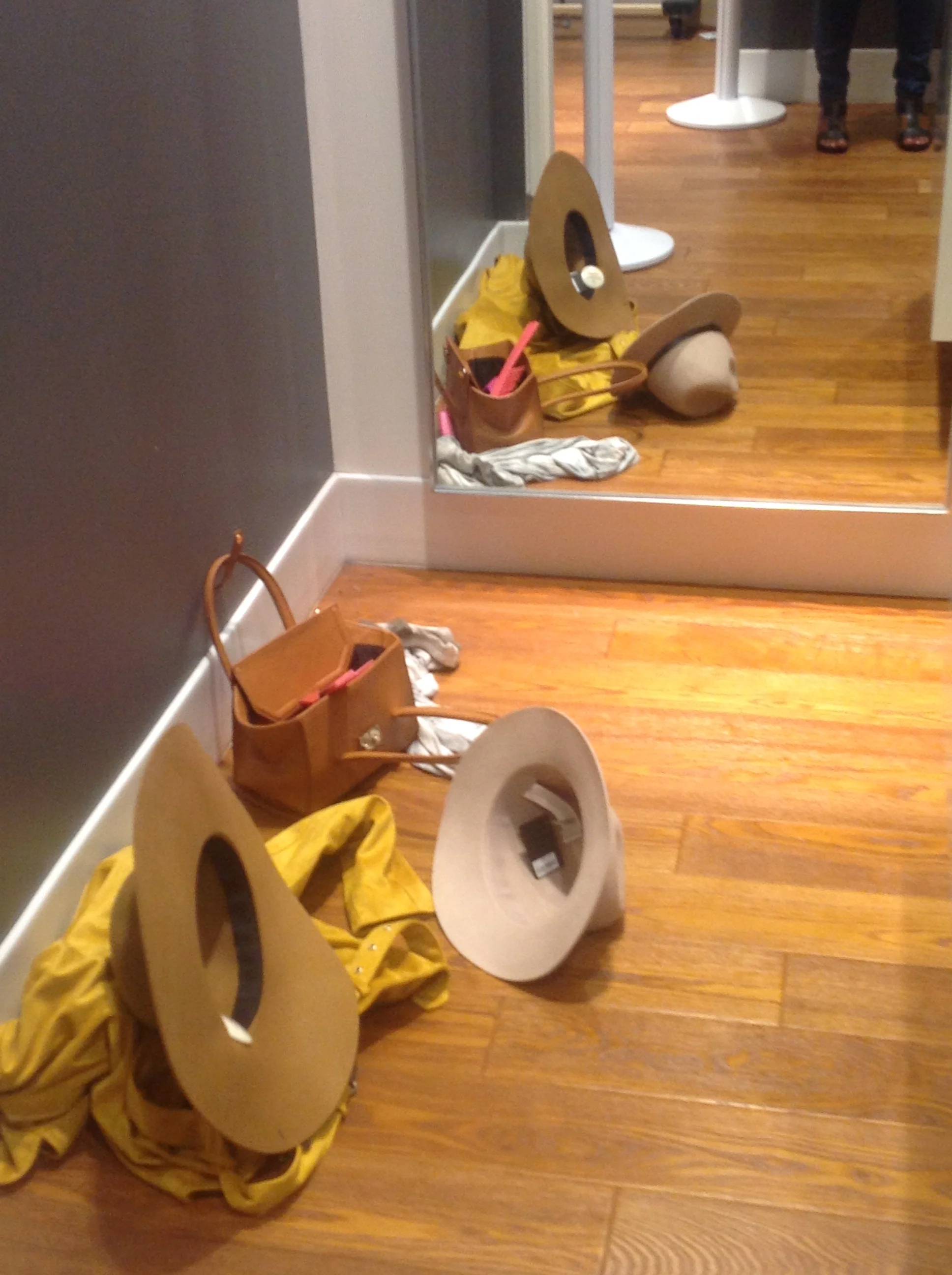 If you are tired and feeling overwhelmed take a second just to catch your breath. Think through everything. Shopping should be fun not stressful! Most fitting rooms have chairs or benches but people tend to pile so much items on the chairs that there’s no area to relax. Don't make that same mistake, free some space and take a breath. Don’t let anyone rush you because you will end up buying what you don’t need and wasting gas to return.