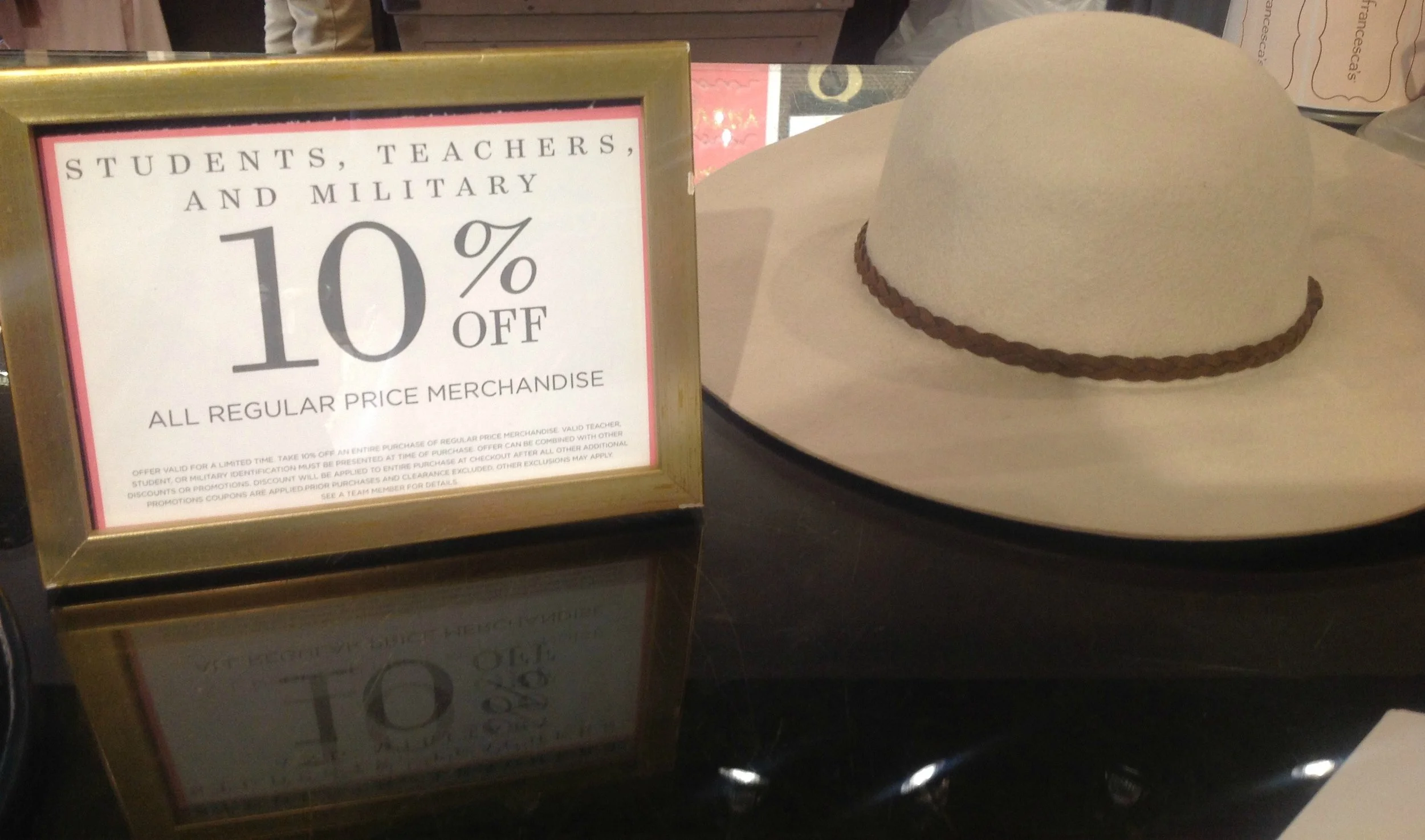 While you’re wrapping things up take a minute and relieve a little more stress, search on your phone for more coupons. Who doesn’t like saving money? Once you’re all rested and ready to purchase, check at the register to see if they have extra discounts. Don’t forget that some stores offer an additional percentage off of military, teacher, and student purchases!
